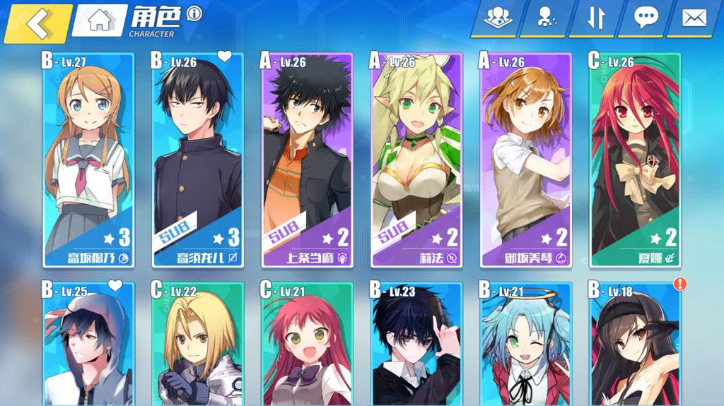 Bộ sưu tập nhân vật trong game khá đa dạng và được chia thành hai loại chính, Nhân vật chính và Nhân vật hỗ trợ. Nhân vật chính là những nhân vật sẽ xuất hiện trong phần lớn trận chiến và Nhân vật hỗ trợ là những nhân vật sẽ thêm vào danh sách các kỹ năng có sẵn mà Nhân vật chính của bạn có trong trận chiến. Ghép các nhân vật cụ thể lại với nhau sẽ giúp phát triển các kỹ năng đặc biệt có sẵn cho đội hình của mình.